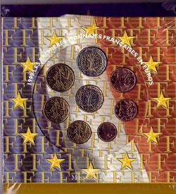 1999 3,88 Euro offizieller Satz![]() 2000 3,88 Euro offizieller Satz BU ![]() 2001 3,88 Euro offizieller Satz BU ![]() 2002 3,88 Euro offizieller Satz BU ![]() 2003 3,88 Euro offizieller Satz BU ![]() 2004 3,88 Euro offizieller Satz BU ![]() Weitere offizielle Sätze aus Frankreich | ||