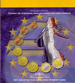 Frankreich 1999-2000-2001 (im Dreiersatz); 2002 3 x 3,88 Euro offizielle Sätze